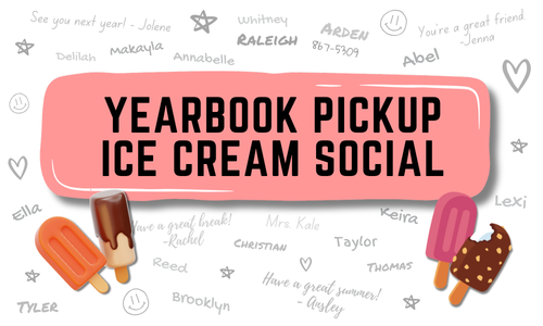 Pick up your Yearbook and enjoy a sweet treat from your PTA! Each yearbook purchased will come with a ticket for one ice cream. Additional ice cream available for purchase.